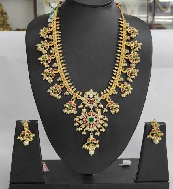 Guttupusalu long haram designs with guttapusalu pendant and uncut stone long necklace model