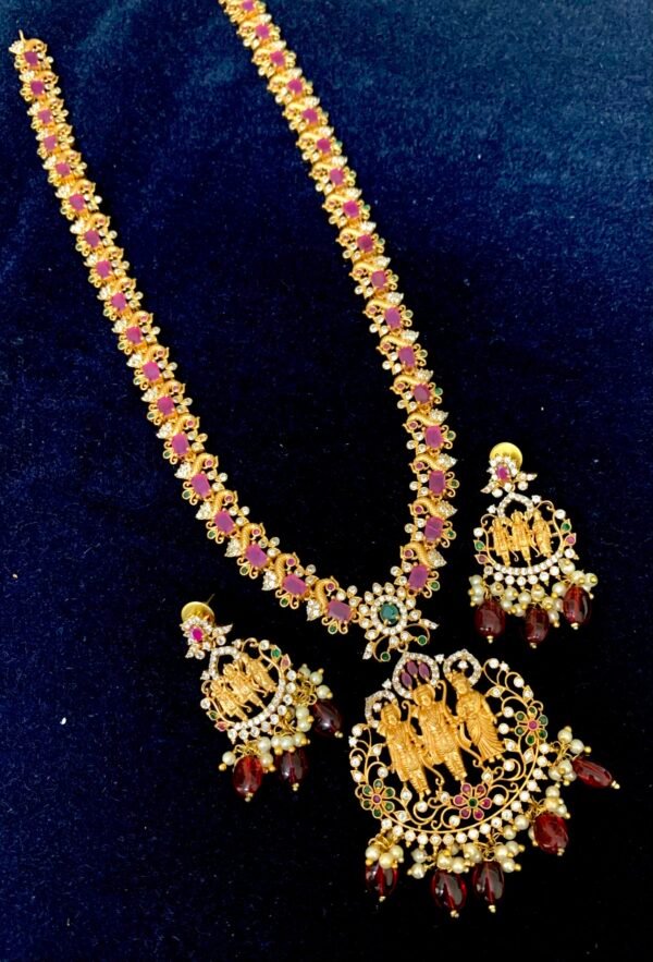 Be the first to review “Ramparivar haram designs Matte long necklace with earrings”