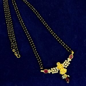 Gold plated Silver black beads chain Ruby stones Simple pendant 2 layers