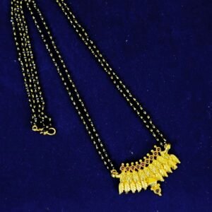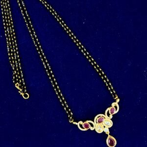 Gold plated Silver black beads chain Ruby stones Simple pendant 2 layers