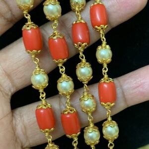 925 Silver chain with Taiwan Corals and pearl model 19 inch length