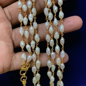 Pure silver Fresh water Rice pearls 2 layers chain 22 inch