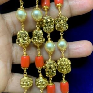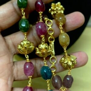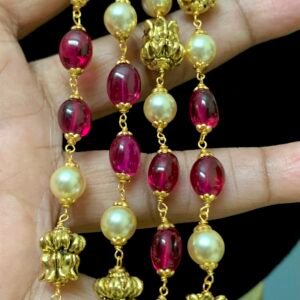 Pure gold plated silver Nakshi balls With Chatam ruby beads chain 24 inch