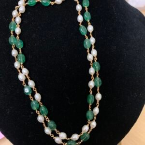 Silver Nakshi Ball Chain with ruby green beads and pearls 19 inch