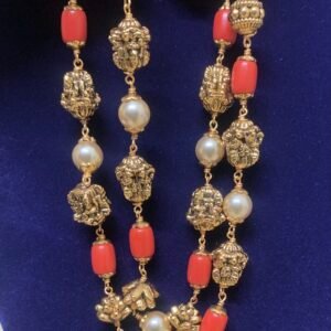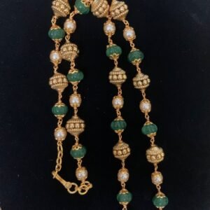 Silver Nakshi Ball Chain with ruby green beads and pearls 19 inch