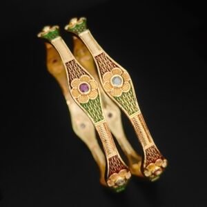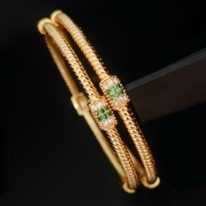 1 gram gold bangles 2.10 size with emerald stones and leaf design