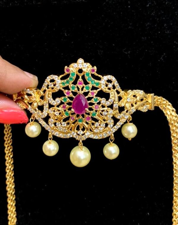 one gram gold armlet design cum choker cz stone model