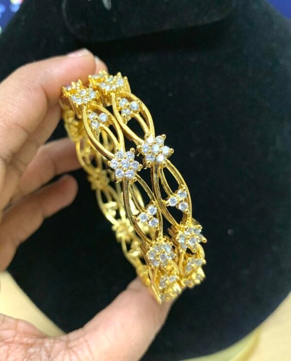 1 gram gold bangles cz stone leaf design 2.6 size