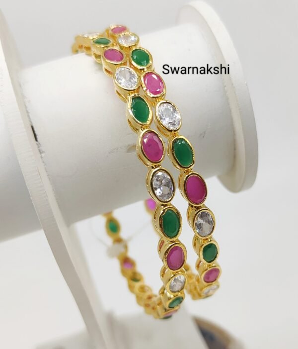 One gram gold 2.6 bangles price with round emerald stone & ruby stones design