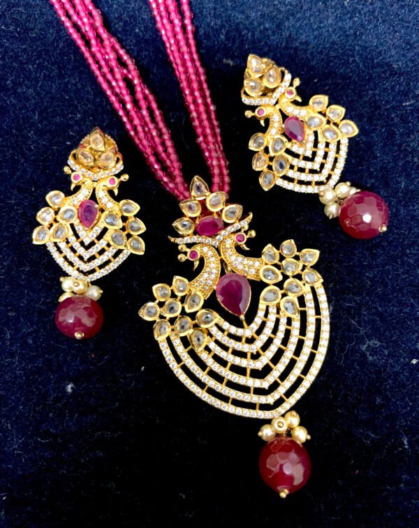 Be the first to review “1 gram gold beads chain Ruby stone nd peacock pendant trendy design”