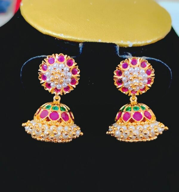 1 gram gold earrings Ruby and emerald stones with beautiful jhumkas