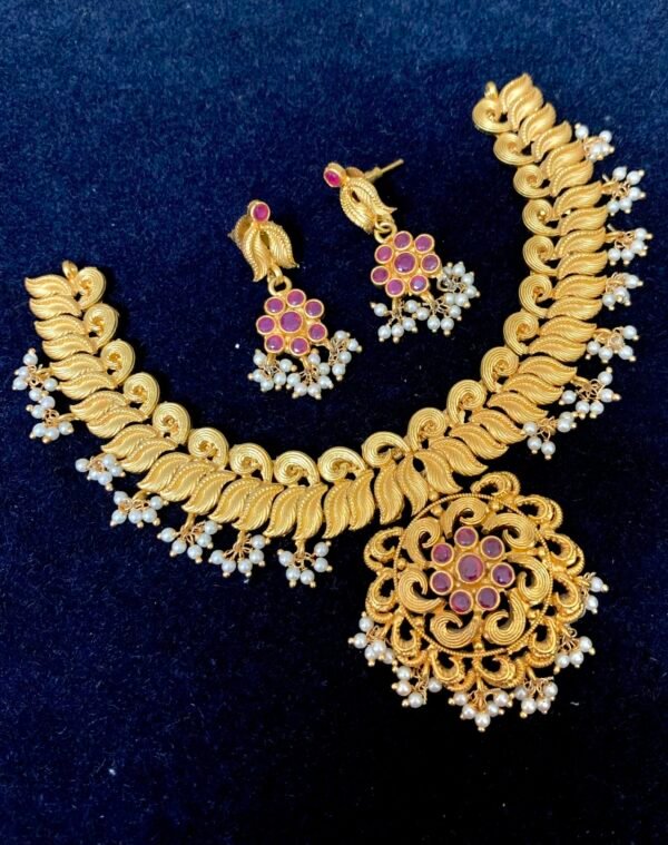 1 gram gold guttapusalu necklace with earrings short model