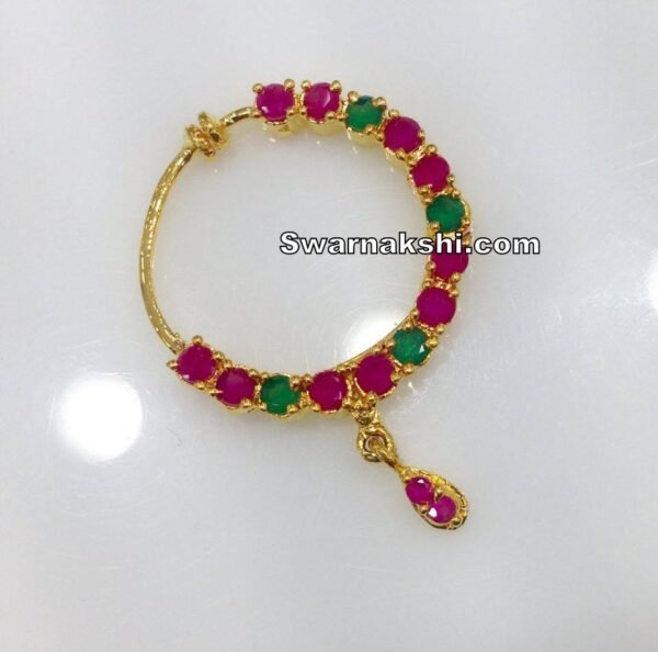 Be the first to review “1 gram gold ruby emerald classic nose ring buy online”
