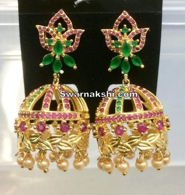 Be the first to review “1 gram gold ruby line emerald lotus jhumkas”