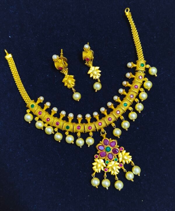 Be the first to review “1 gram gold short necklace with pear drop border model”