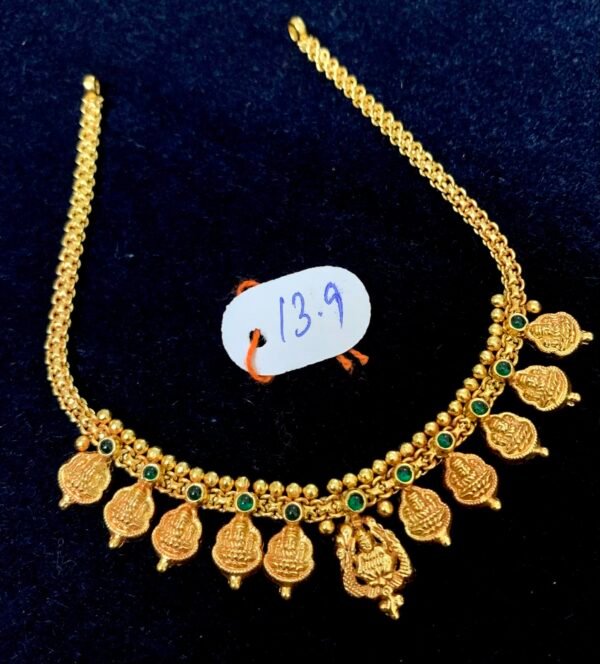 Be the first to review “92.5 silver gold plated necklace lakshmi design”