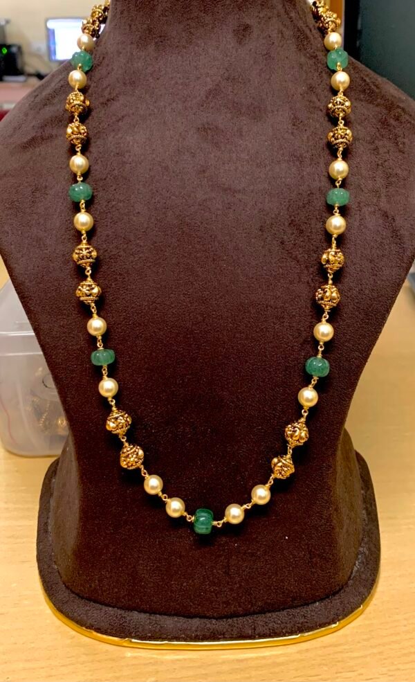 Item Description : Silver gold plated 8-9mm Nakshi Balls and 6mm pearls chain-pumpkin beads-6mm