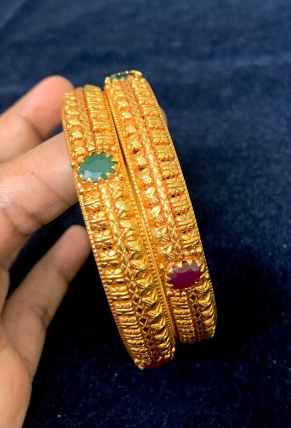 Item Description : 925 silver bangles gold plated Round shape stones model