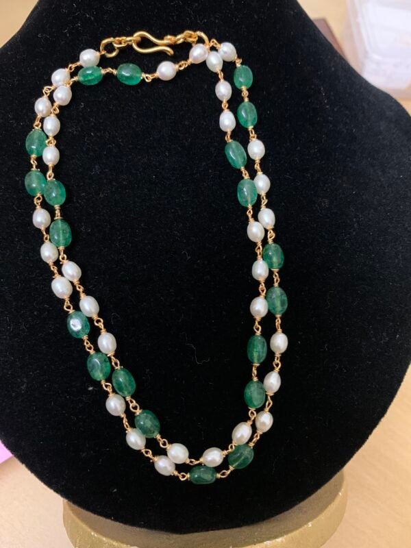 Item Description : Silver gold plated 4mm chatam green and 4 mm fresh water pearls chain