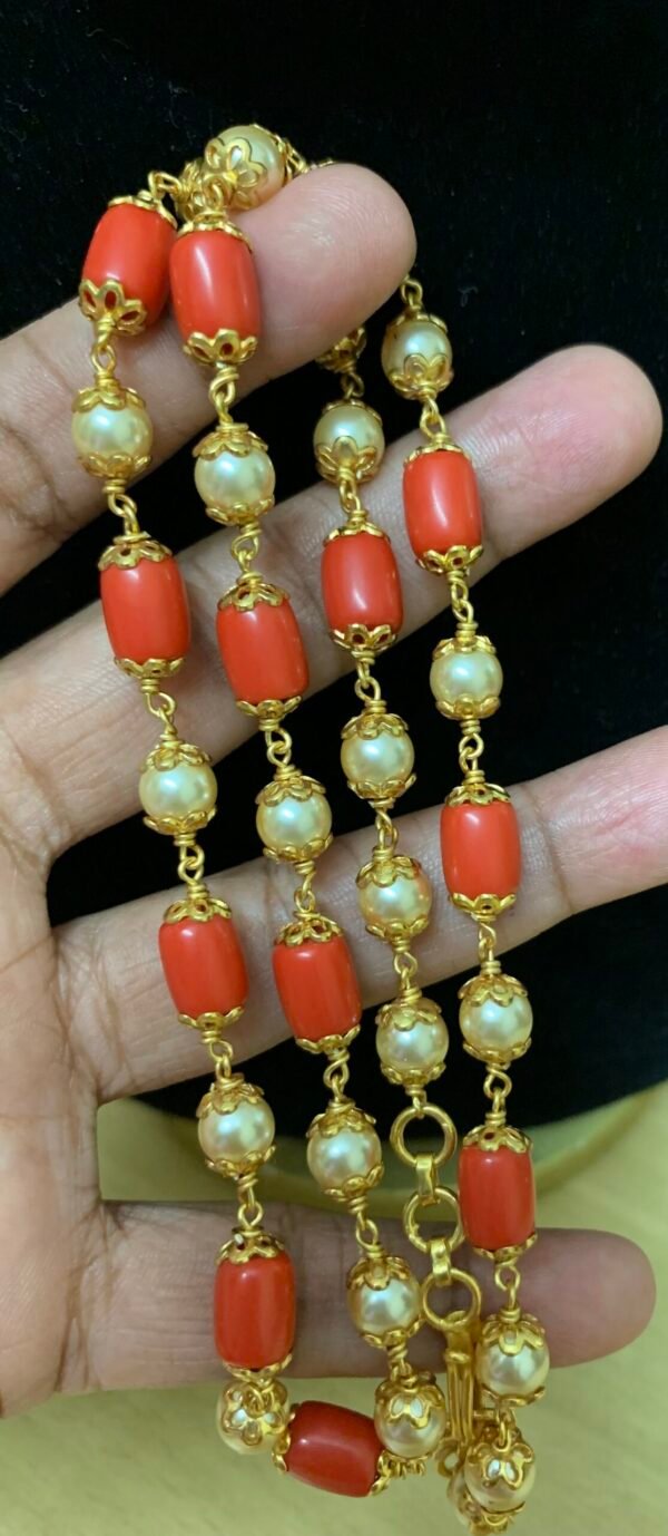 925 Silver chain with Taiwan Corals and pearl model 19 inch length
