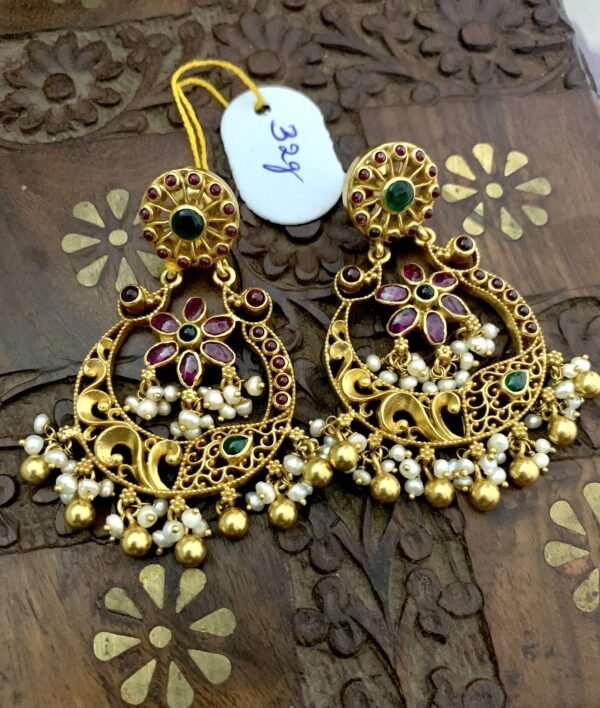 Be the first to review “925 silver gold plated chandbali large size with drops”
