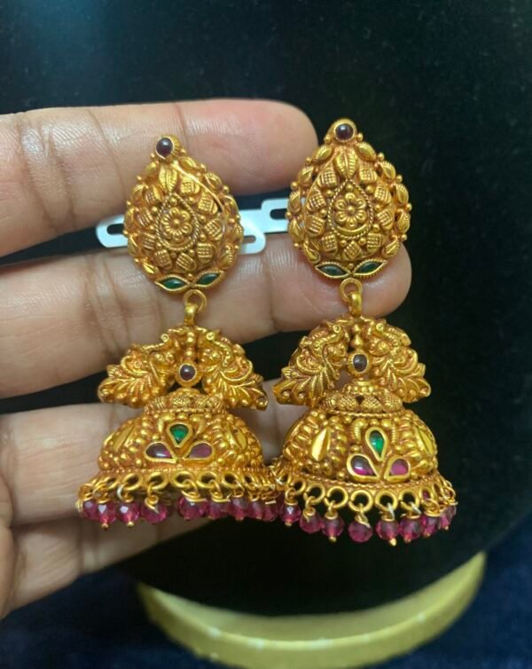 Be the first to review “925 Silver gold plated jhumka earrings with Nakshi design”