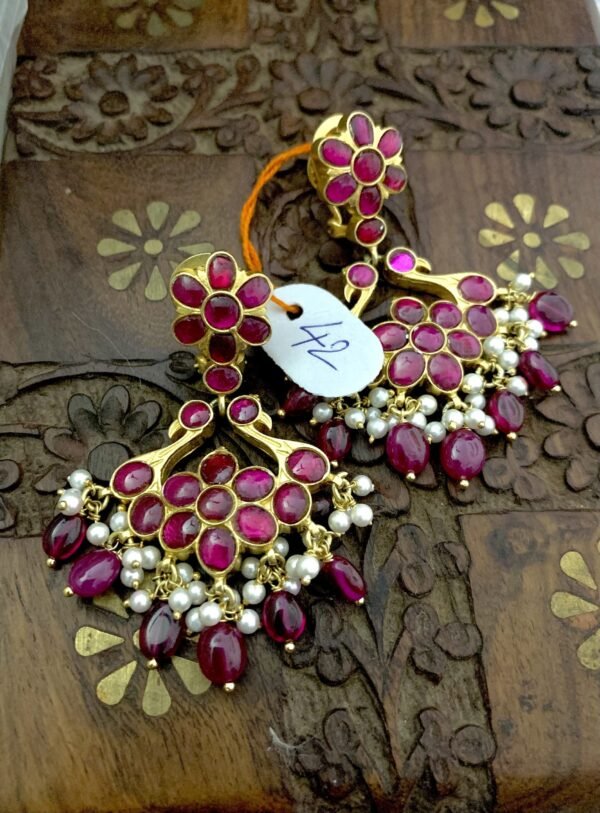 Be the first to review “925 silver gold plated kundan chandbali large size”