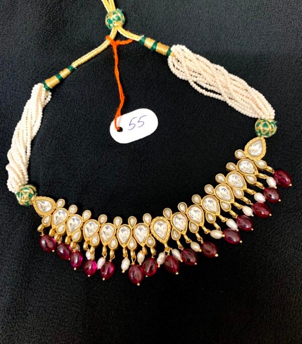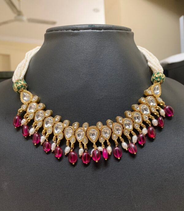 925 silver gold plated kundan necklace rice pearl and bead drops 55 grams