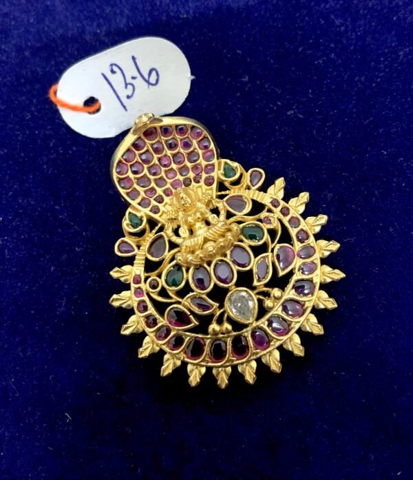 Be the first to review “925 silver gold plated Laxmidevi pendant with kundan design”