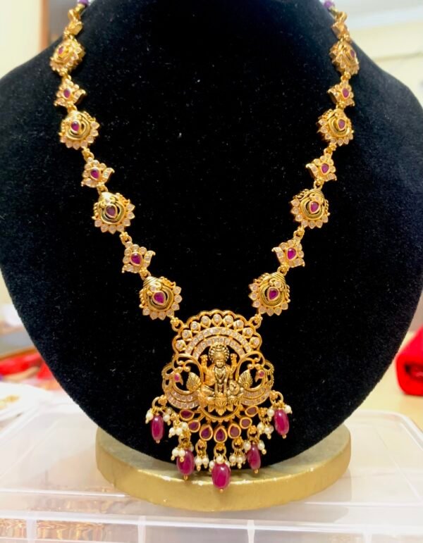 Item Description : 92.5 silver gold plated Lakshmi design necklaces with bead drops model