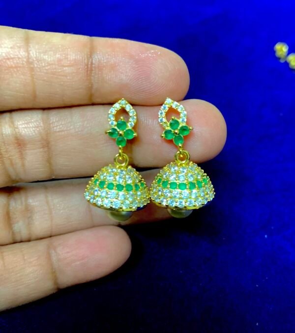 Be the first to review “925 silver jhumka earrings with emerald stones design”