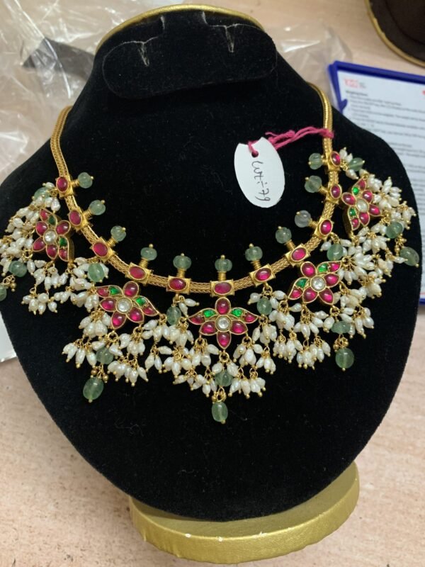 Be the first to review “925 silver kundan gutta necklace designs with green beads”