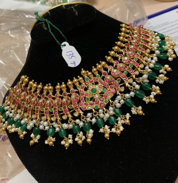 Be the first to review “925 silver kundan necklace with green bead drops”