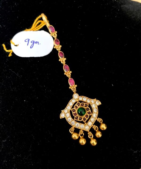 Be the first to review “925 silver maangtika Gold plated long model multi colour stone”