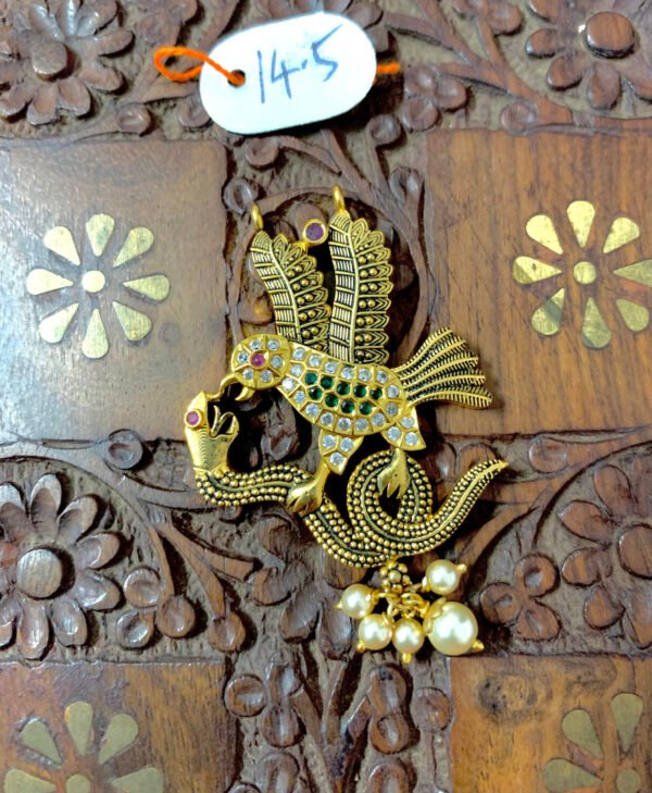 Item Description : Gold polished silver Pendant unique traditional Eagle and snake design pendant