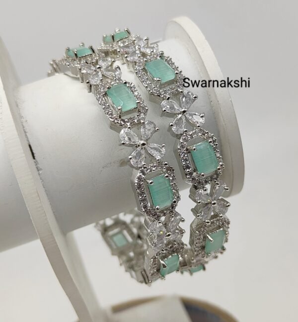 Be the first to review “Ad stone bangles Floral design mint color stone Silver polish bangles 2.4 size”