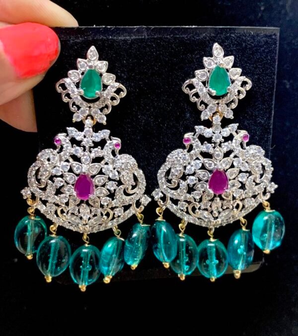 Be the first to review “AD stone chandbali earrings models with peacock design”