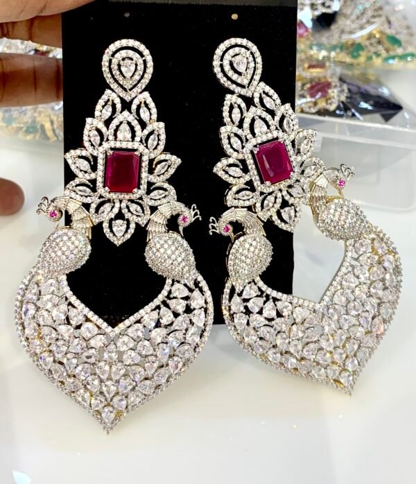 CZ dangle earrings with ruby stones grand design