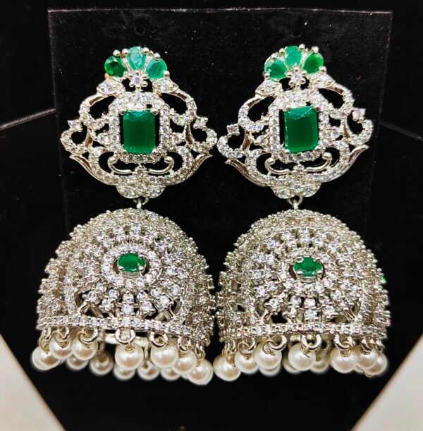 Be the first to review “Ad stone earrings with price green stone Large size jhumka”