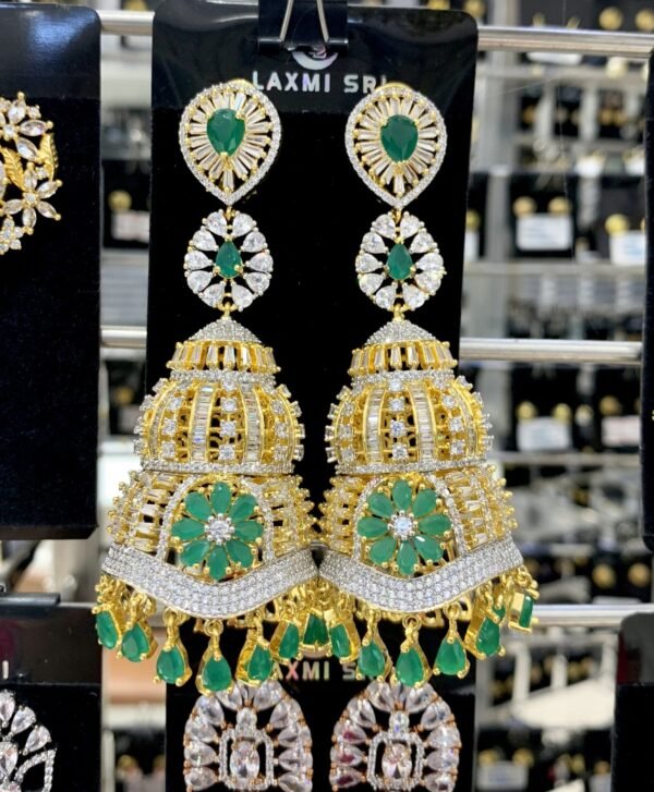 Be the first to review “AD stone jhumka earrings with emerald stones and floral design”