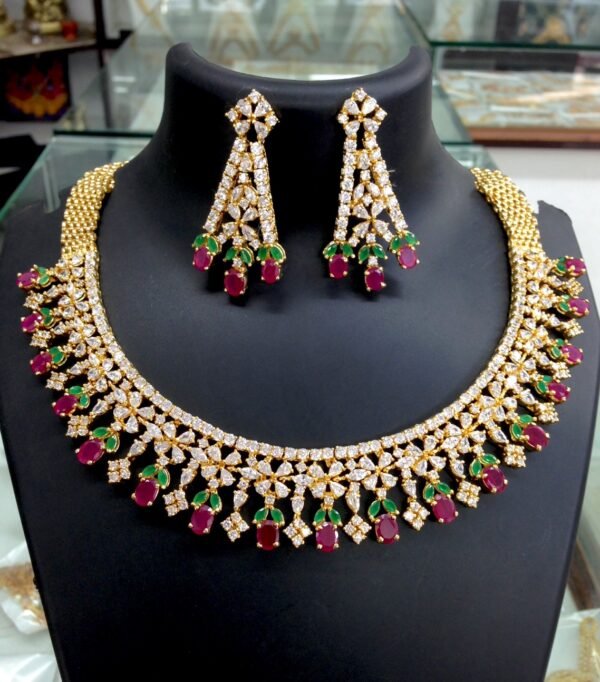 Jewellery combo set with grand CZ ruby stone necklace haram