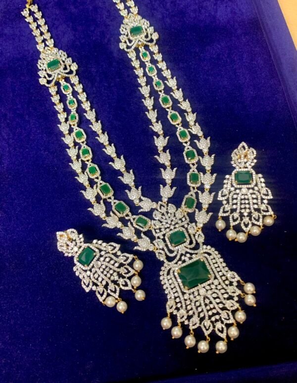 Be the first to review “Ad stone traditional jewellery Green stones with lotus model haram”
