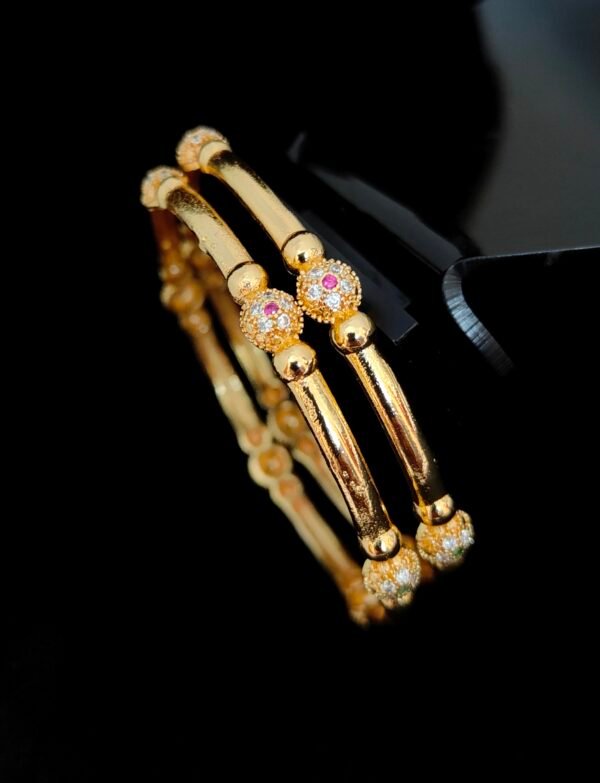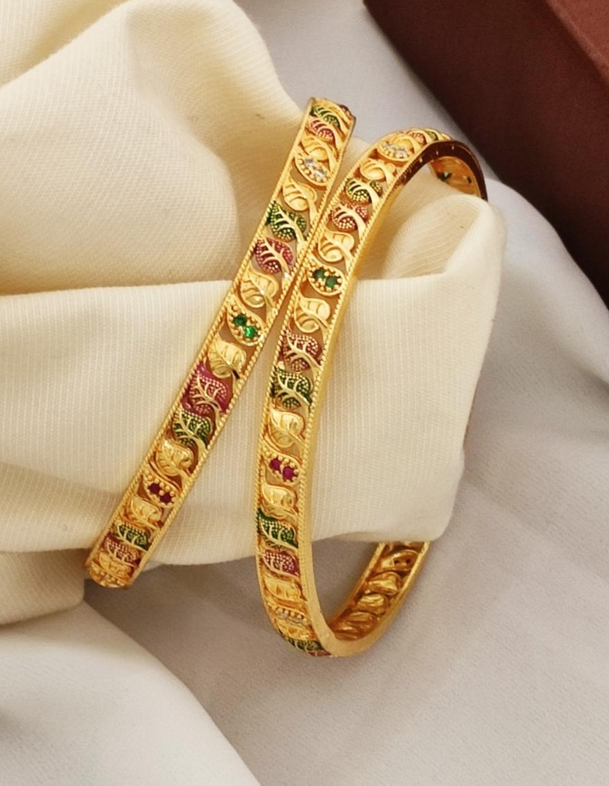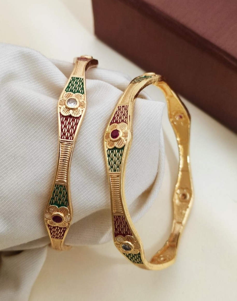 One gram gold bangles with gold polish floral design
