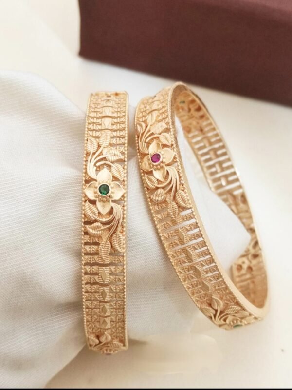 1 gram gold bangles cz stone leaf design 2.6 size