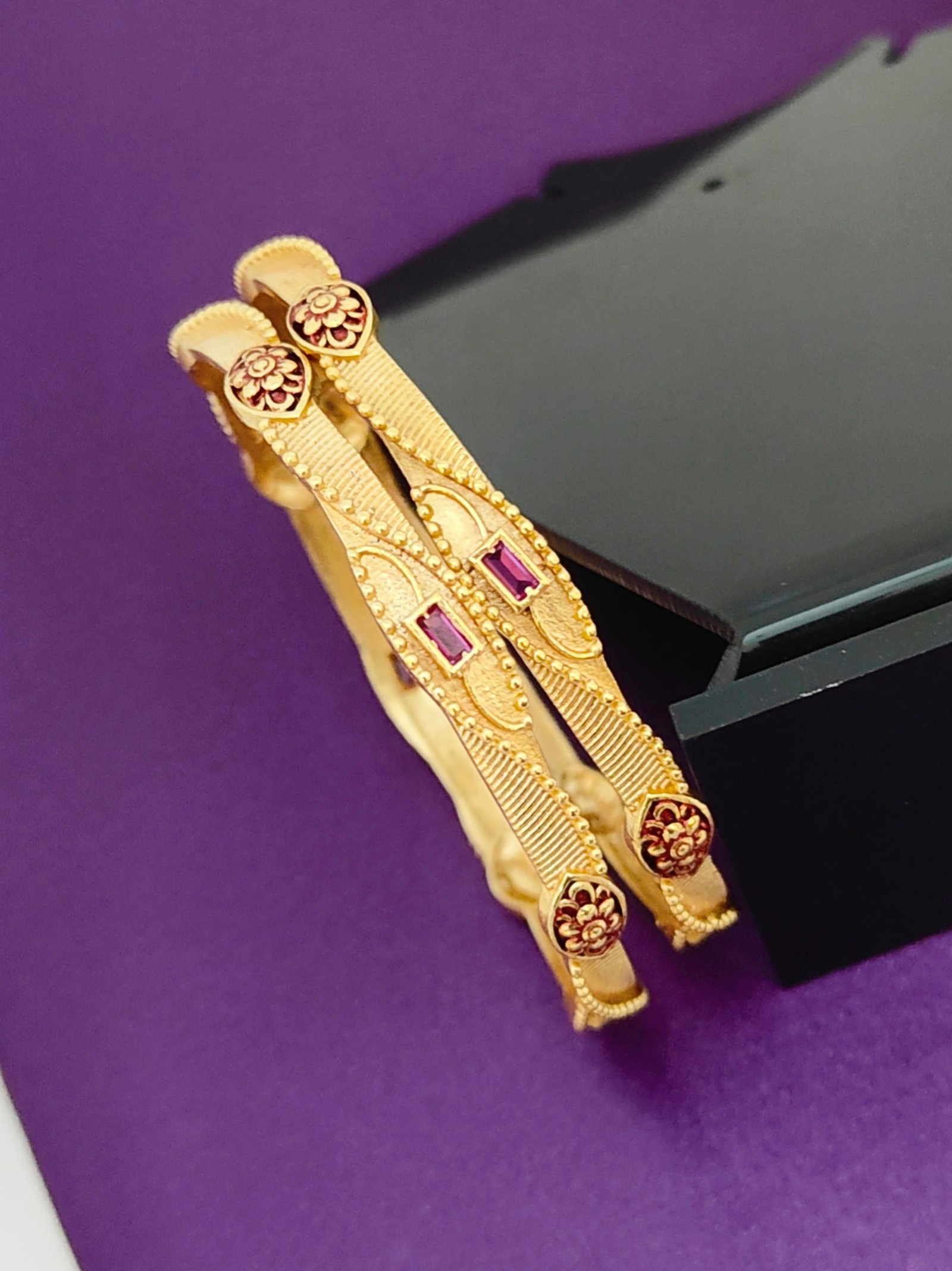 1 gram gold 2.8 size cz ruby emerald stone floral bangles