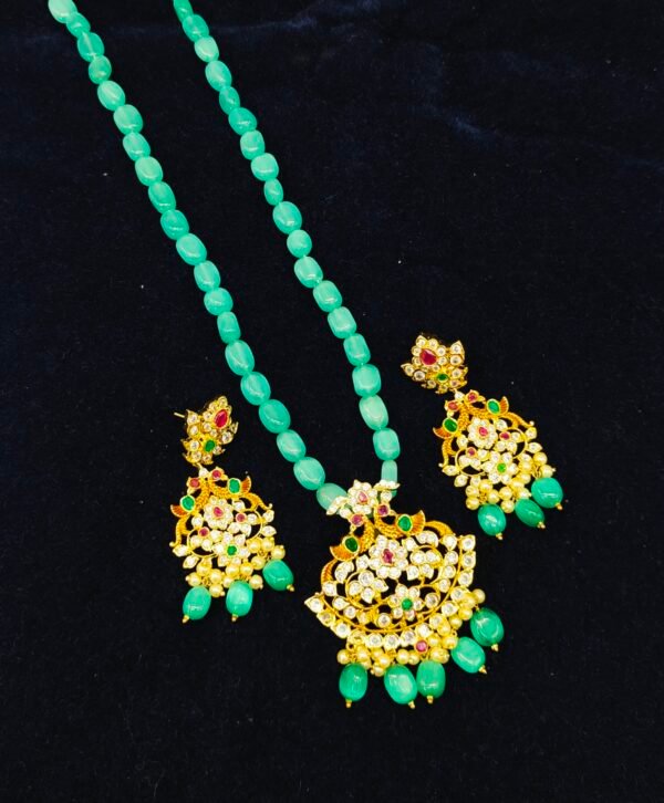 Be the first to review “Beads chains models CZ stones matt finish pendant peacock design”