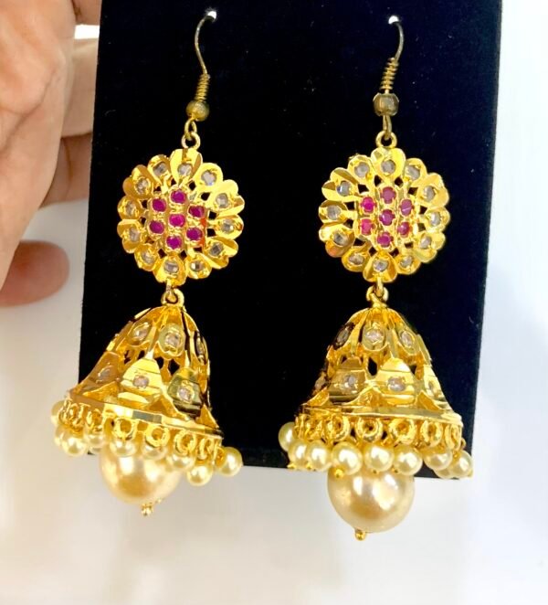 Be the first to review “Big size One gram gold jhumka earrings pearl model”