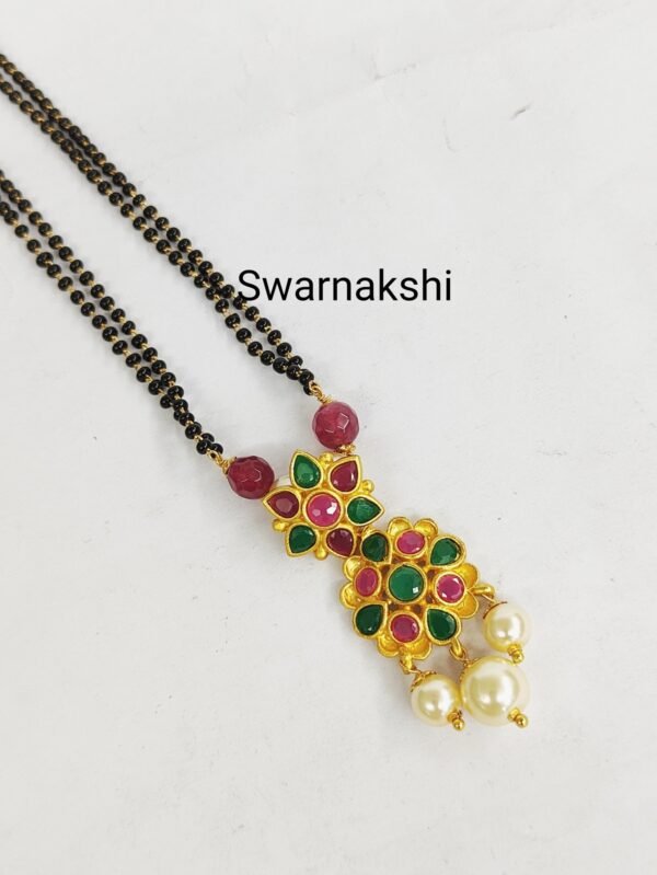 Mangalsutra design with ruby stones and pearls mango model / black beads