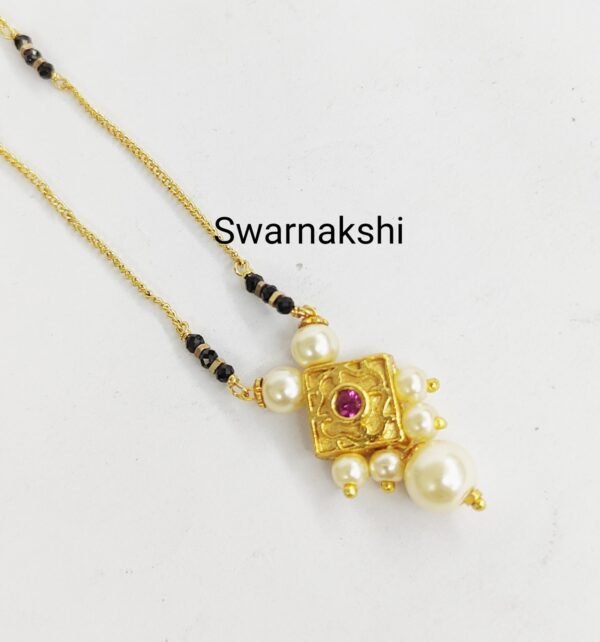 Be the first to review “Black beads mangalsutra models with pearl desgin”