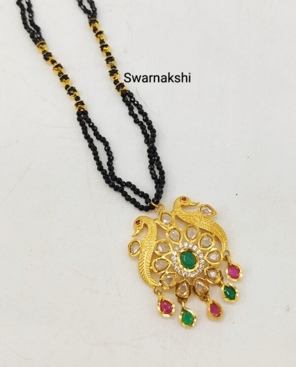 Be the first to review “Black crystal beads chain online Multi color and kundan stones pendant”